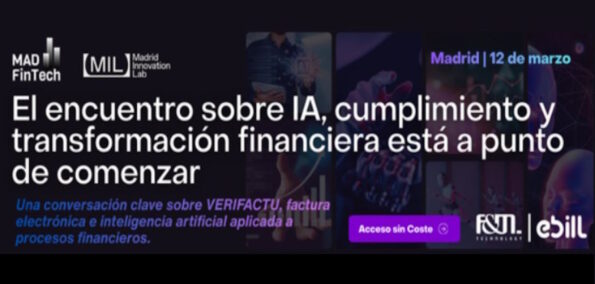 El clúster MAD FinTech te invita a inscribirte sin coste en el evento ‘Inteligencia Artificial, Cumplimiento y Transformación Financiera’, organizado por eBill el 12 de marzo en Madrid Innovation Lab.